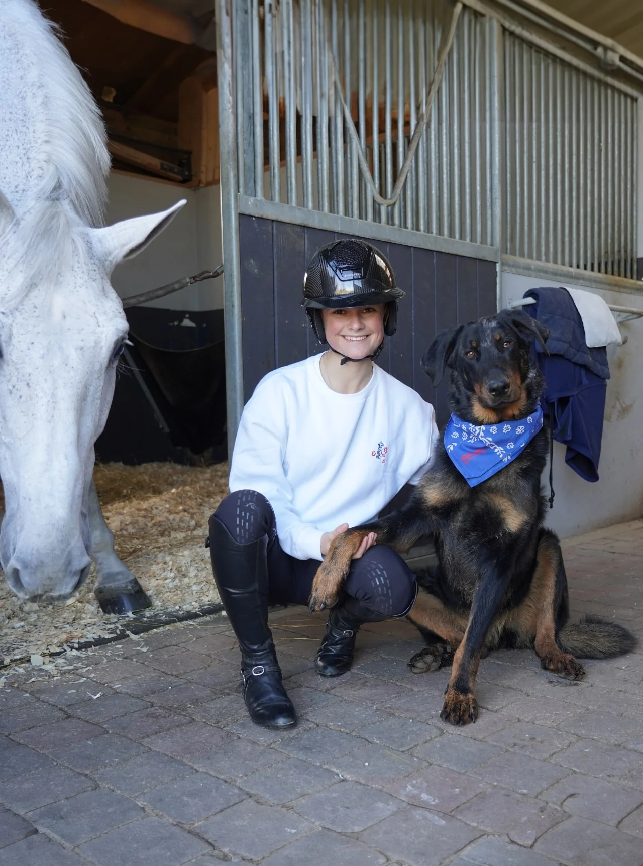 Le sweat de cette collection est 100 % coton. L’imprimé a été créé avec Eden Leprévost en clin d’œil à son cheval Golden Cygano Jap avec qui elle à couru ses premiers Grand Prix 4 étoiles. Ces sweats sont “made in Europe”. La coupe légèrement oversize permet d’être à l’aise aussi bien en ville qu’aux écuries… si tant est que vous n’ayez pas peur de vous salir.