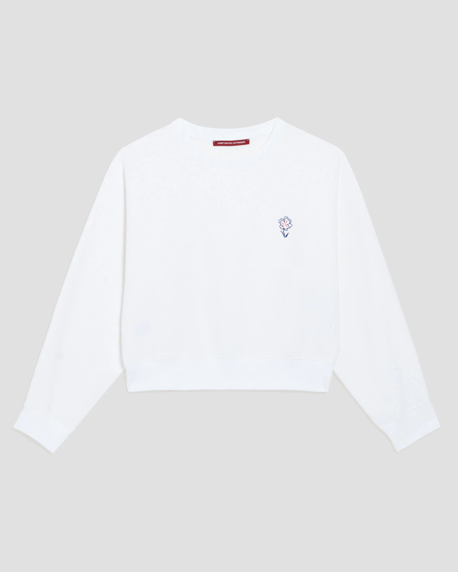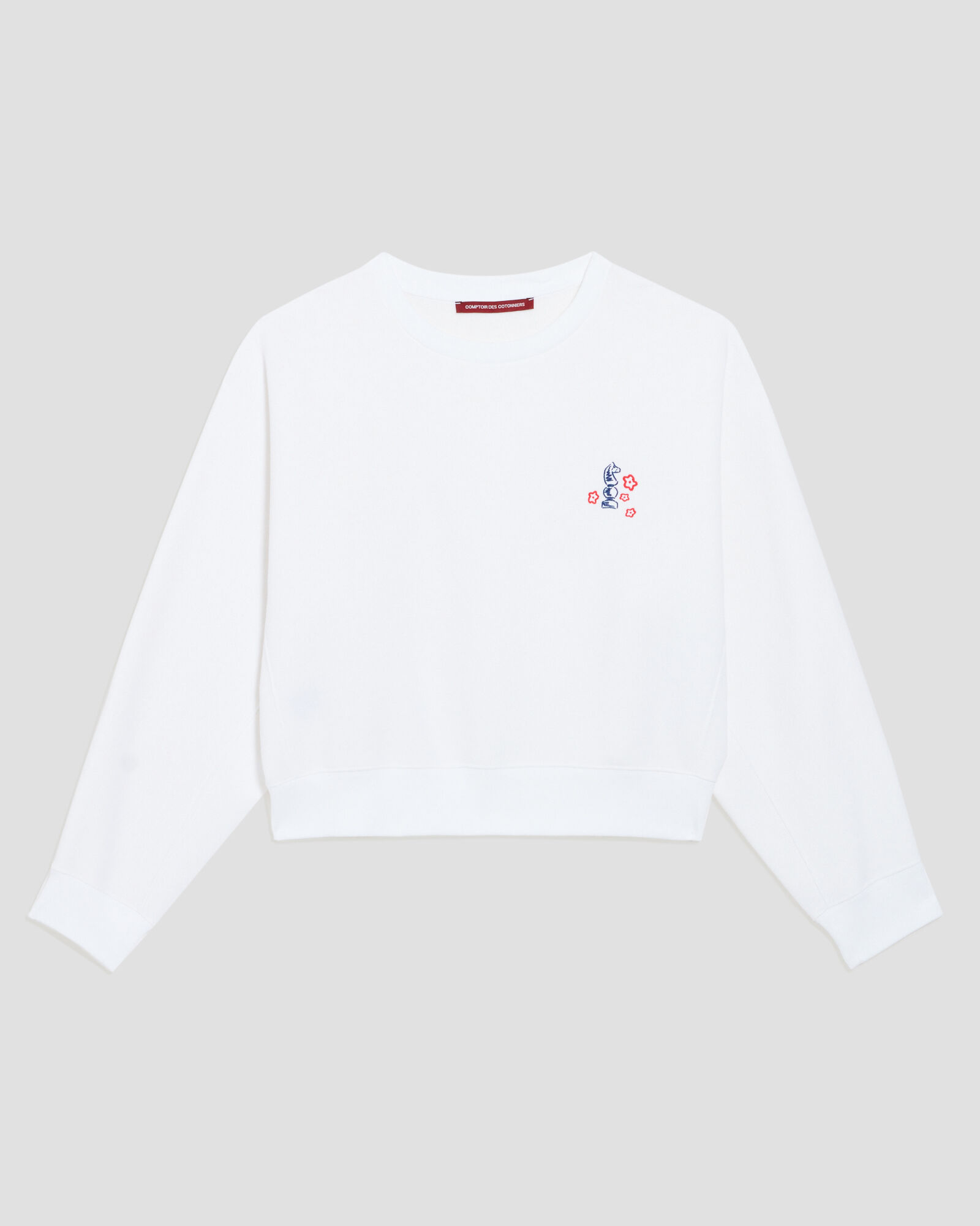 Trois pièces : un sweat, un t-shirt et un foulard, avec une direction artistique axée sur le “bleu blanc rouge”. Chaque article reflétant l’esprit des cavalières et le style Comptoir des Cotonniers.