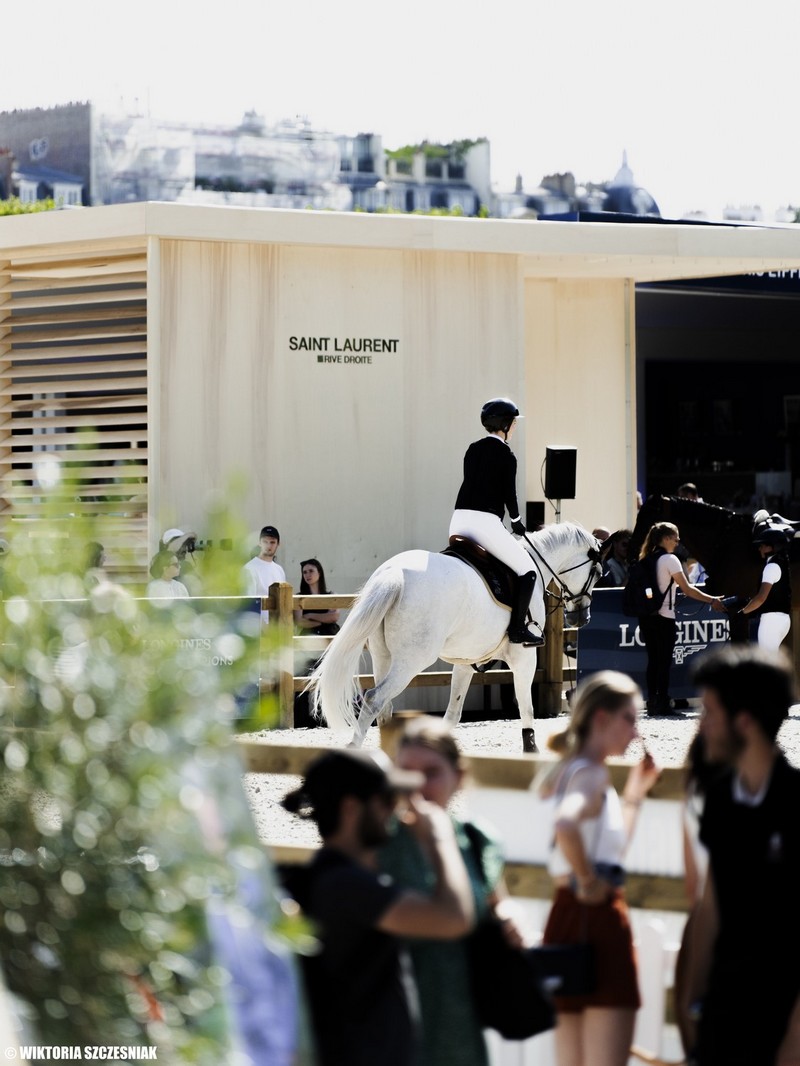 La maison de luxe parisienne Saint-Laurent, partenaire du Longines Paris Eiffel Jumping 2023, et son directeur artistique Anthony Vaccarello ont mis en lumière leur nouvelle collection équestre au pied de la Tour Eiffel à l’occasion de l’événement. La place Jacques Rueff, au cœur du Champ de Mars, a incarné les codes de la marque au travers d’obstacles à leur effigie, d’épreuves à leur nom et d’un restaurant simplement nommé YSL.